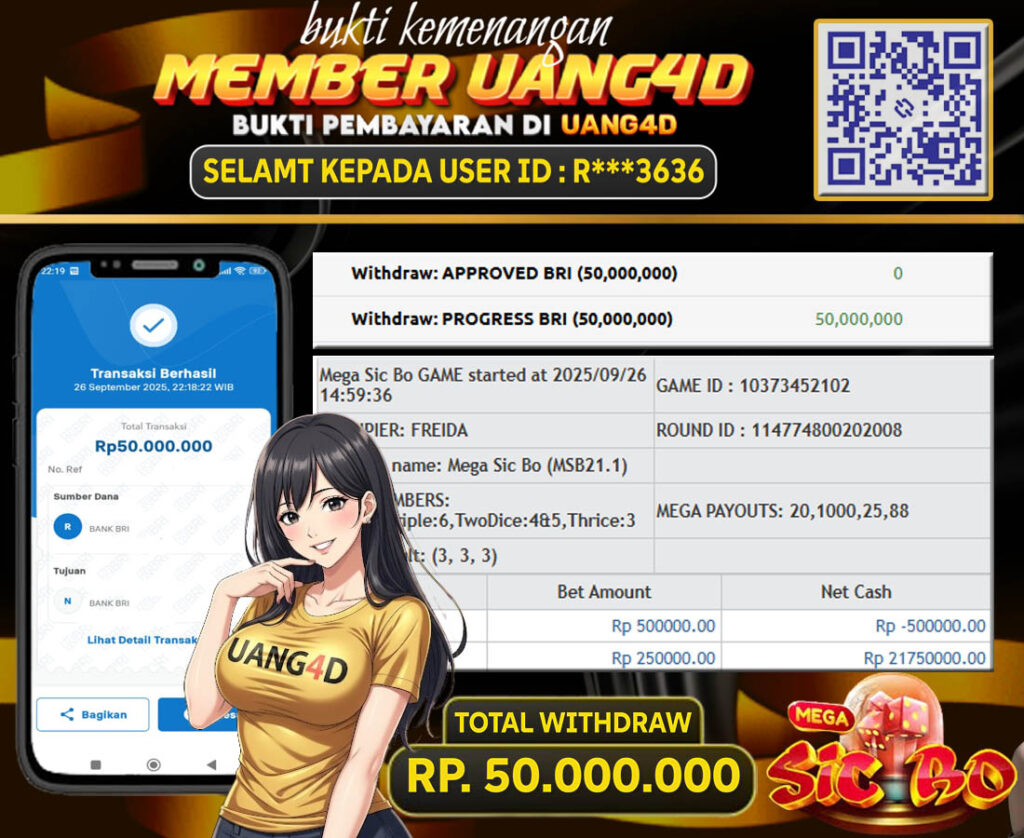 Setiap hari, member UANG4D berhasil meraih jackpot besar dari berbagai macam permainan livecasino ternama yang kami sediakan, seperti Roullete, Dragon & Tiger, Qiu Qiu dan masih banyak lagi. Kami secara rutin menampilkan bukti screenshot atau rekapan kemenangan yang berhasil diraih, mulai dari kemenangan ratusan ribu hingga puluhan juta rupiah. Semua slip kemenangan ini kami hadirkan untuk membuktikan bahwa di UANG4D, peluang menang itu nyata.