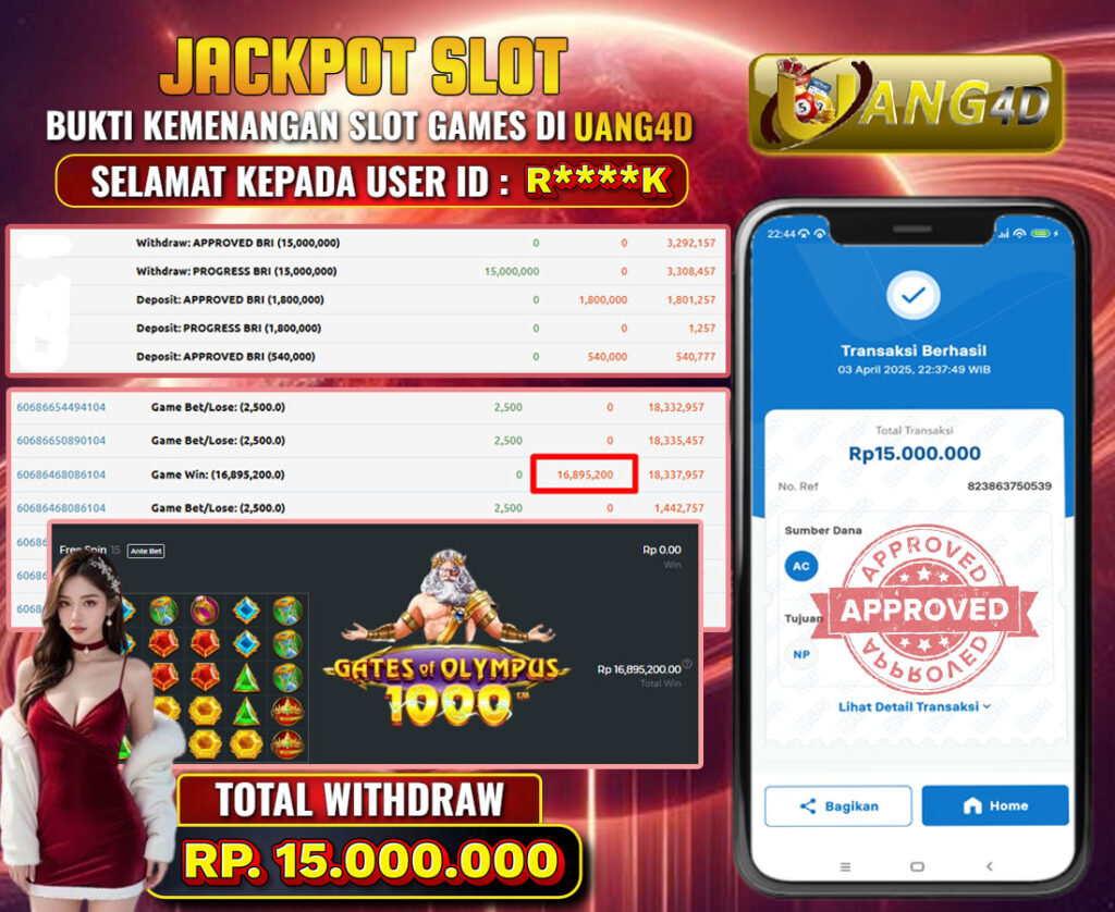 UANG4DJACKPOT SLOT GACOR OLYMPUS x1000 04 APRIL 2025, Jackpot Slot, Kemenangan Slot, Bukti Kemenangan Slot, Kemenangan Slot Pragmatic Play, Menang Slot online, Slot Gacor, Situs Aman Terpercaya, WD Berapapun Pasti DI Bayar Tuntas, Maxwin Slot Online.
