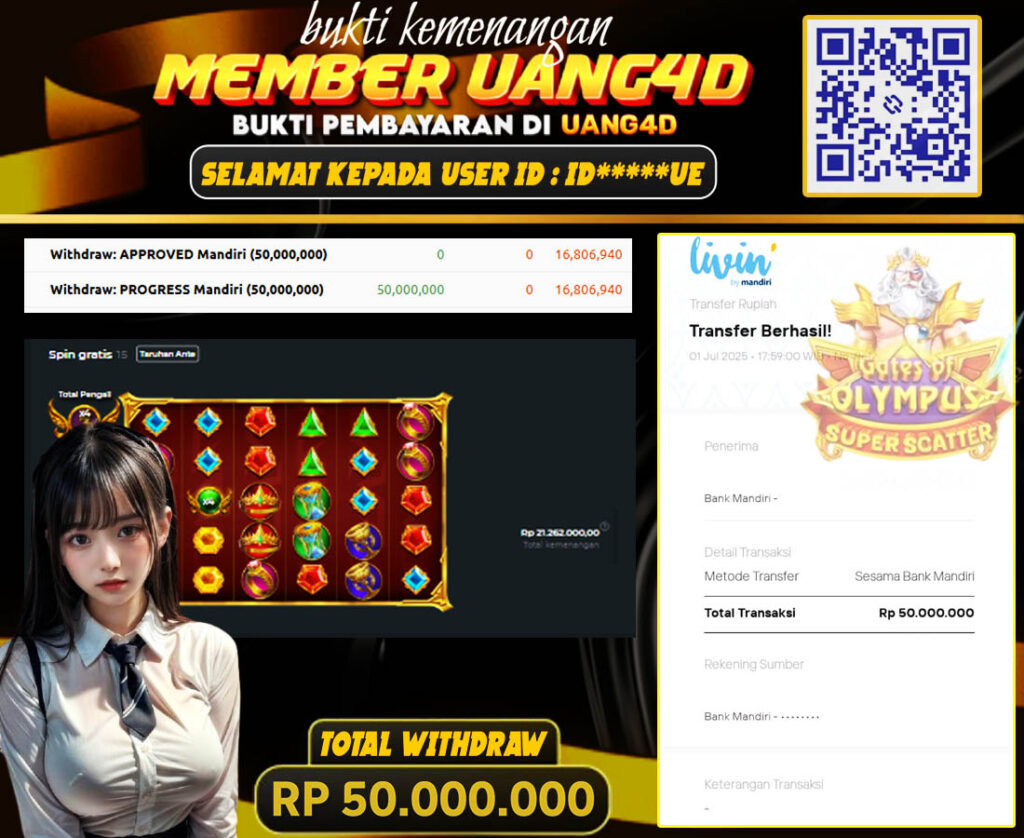 UANG4D –JACKPOT SLOT Gates of Olympus Super Scatter 01 juli 2025, Kemenangan Slot, Bukti Kemenangan Slot, Kemenangan Slot Pragmatic Play, Menang Slot online, Slot Gacor, Situs Aman Terpercaya, Withdraw Berapapun Pasti DI Bayar Tuntas, Maxwin Slot Online.