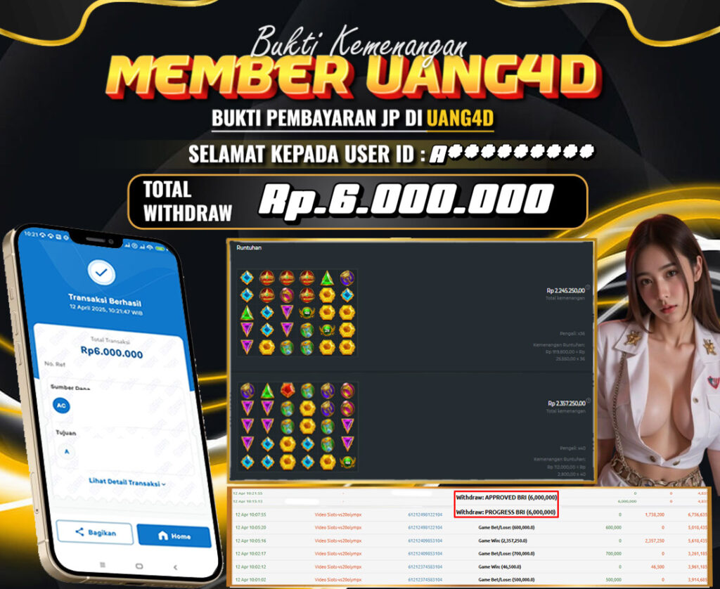 Jangan lewatkan kesempatan untuk meraih kemenangan besar. Daftar sekarang di UANG4D dan rasakan pengalaman bermain slot terbaik yang pernah ada! Putar gulungan, menangkan jackpot, dan jadilah bagian dari komunitas pemain sukses kami!