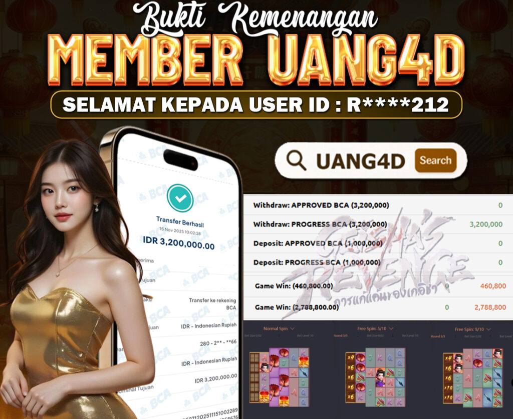 Jangan lewatkan kesempatan untuk meraih kemenangan besar. Daftar sekarang di UANG4D dan rasakan pengalaman bermain slot terbaik yang pernah ada! Putar gulungan, menangkan jackpot, dan jadilah bagian dari komunitas pemain sukses kami!