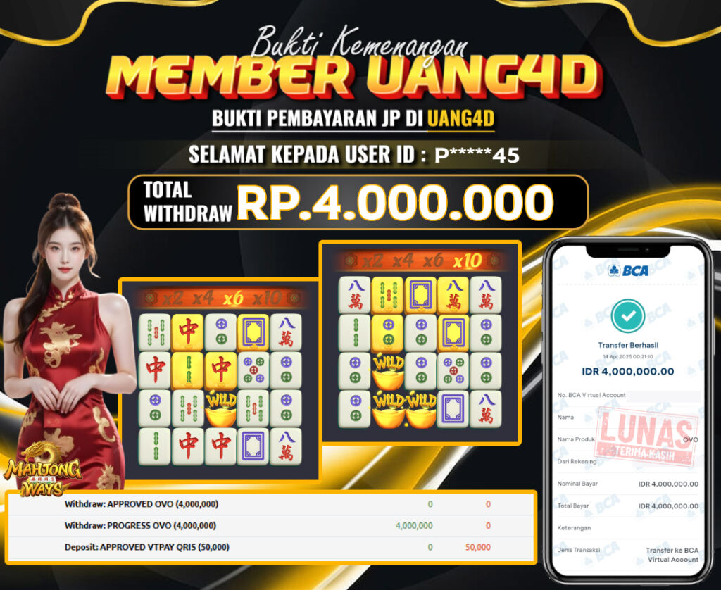 UANG4D –JACKPOT SLOT MAHJONG WAYS 14 APRIL 2025 , Kemenangan Slot, Bukti Kemenangan Slot, Kemenangan Slot PG Soft, Menang Slot online, Slot Gacor, Situs Aman Terpercaya, Withdraw Berapapun Pasti DI Bayar Tuntas, Maxwin Slot Online.