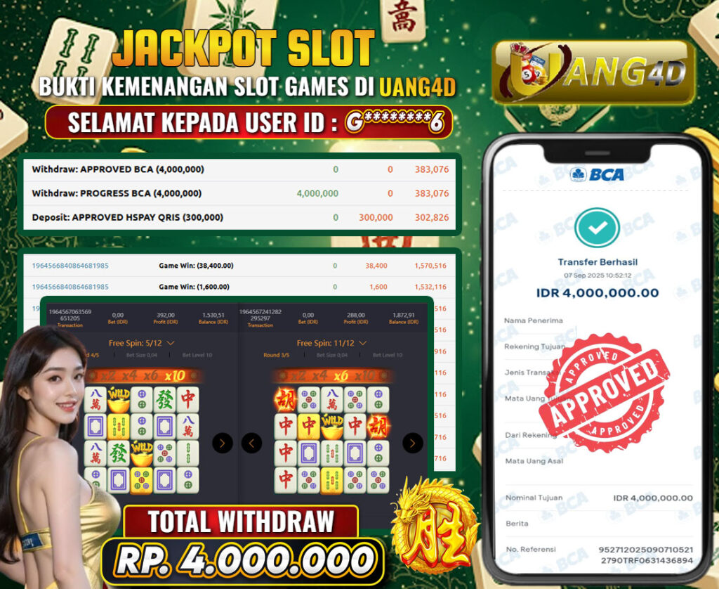 UANG4D – JACKPOT SLOT MAHYONG WAYS 07 SEPTEMBER 2025 , Jackpot Slot, Kemenangan Slot, Bukti Kemenangan Slot, Kemenangan Slot PG SOFT Play, Menang Slot online, Slot Gacor, Situs Aman Terpercaya, Withdraw Berapapun Pasti DI Bayar Tuntas, Maxwin Slot Online.
