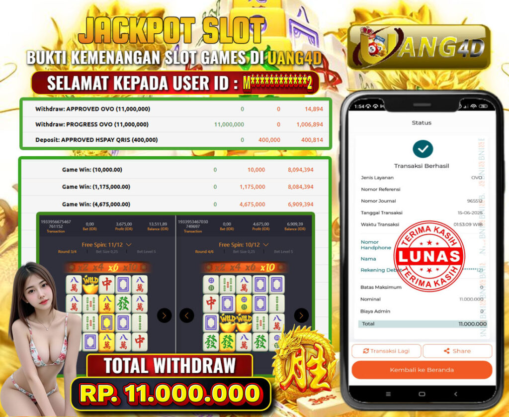 UANG4D – JACKPOT SLOT MAHYONG WAYS 15 JUNI 2025 , Jackpot Slot, Kemenangan Slot, Bukti Kemenangan Slot, Kemenangan Slot Pragmatic Play, Menang Slot online, Slot Gacor, Situs Aman Terpercaya, Withdraw Berapapun Pasti DI Bayar Tuntas, Maxwin Slot Online.