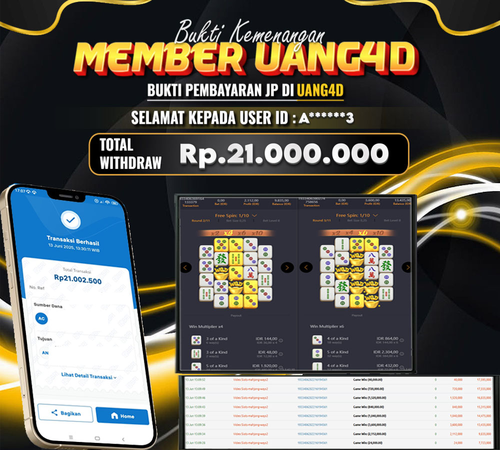 UANG4D – JACKPOT SLOT MAHYONG WAYS 2 13JUNI 2025 , Jackpot Slot, Kemenangan Slot, Bukti Kemenangan Slot, Kemenangan Slot Pragmatic Play, Menang Slot online, Slot Gacor, Situs Aman Terpercaya, Withdraw Berapapun Pasti DI Bayar Tuntas, Maxwin Slot Online.