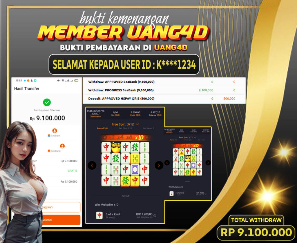 Jangan lewatkan kesempatan untuk meraih kemenangan besar. Daftar sekarang di UANG4D dan rasakan pengalaman bermain slot terbaik yang pernah ada! Putar gulungan, menangkan jackpot, dan jadilah bagian dari komunitas pemain sukses kami!