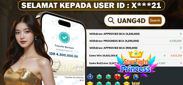 UANG4D –JACKPOT SLOT STARLIGHT PRINCES 27 SEPTEMBER 2025 Kemenangan Slot, Bukti Kemenangan Slot, Kemenangan Slot Pragmatic Play, Menang Slot online, Slot Gacor, Situs Aman Terpercaya, Withdraw Berapapun Pasti DI Bayar Tuntas, Maxwin Slot Online.