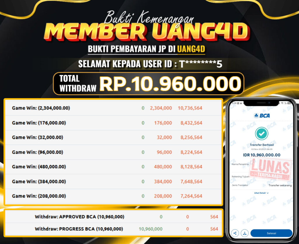 TOTAL KEMENANGAN : Rp.10,960,000,-