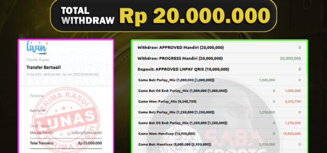 JACKPOT SPORTBOOK MAIN SBO SPORTBOOK 21 DESEMBER 2025, Jackpot Sportbook, Kemenangan Sportbook, Bukti Kemenangan Sportbook, Kemenangan Sportbook SBO Sportbook, Menang Sportbook Online, Sportbook Akurat, Situs Aman Terpercaya, WD Berapapun Pasti DI Bayar Tuntas, Jackpot Sportbook.